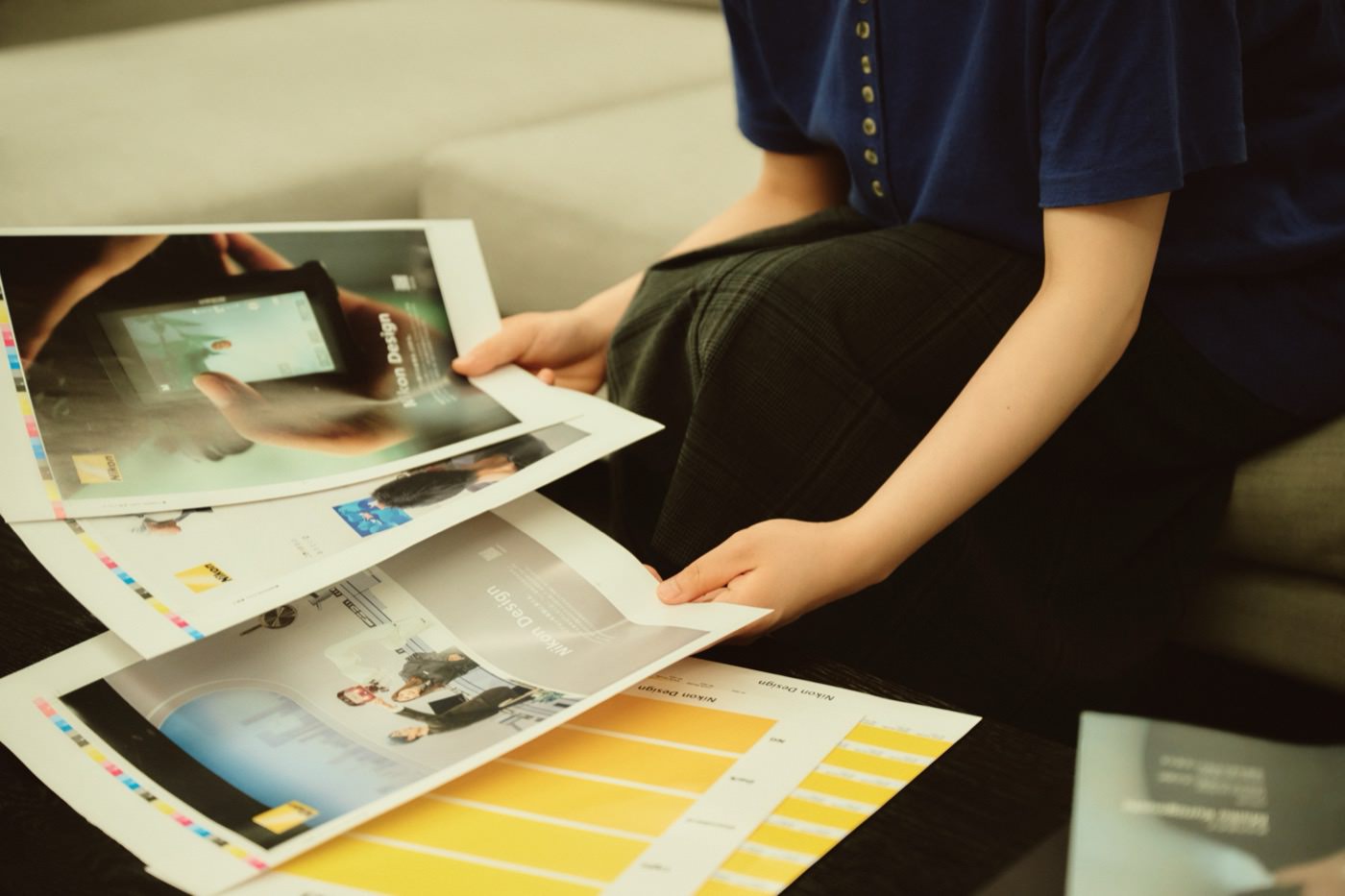 私が所属しているグループは、ニコンのコミュニケーションデザインの幅広い領域に関わります。これまで、事業部のカタログや製品のロゴなど、様々な媒体に携わってきました。