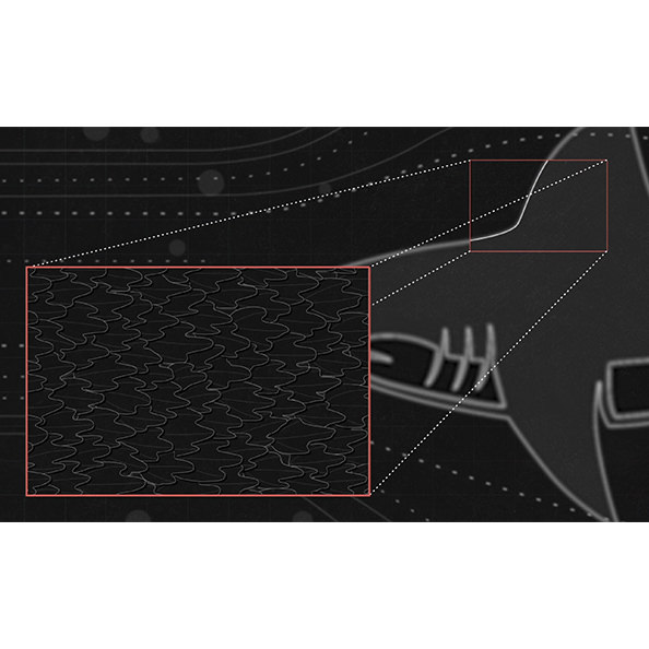 ニコンが生み出すリブレットの特色は、極めて精度の高いレーザー加工技術と、それがもたらす自由度にあります。金属、樹脂、フィルムといったさまざまな材料に対応できるほか、複雑な3次元曲面への加工も可能。さらに、対象によって異なるもっとも効果的なリブレットのデザインを、ほぼ無制限に追求することもできます。
