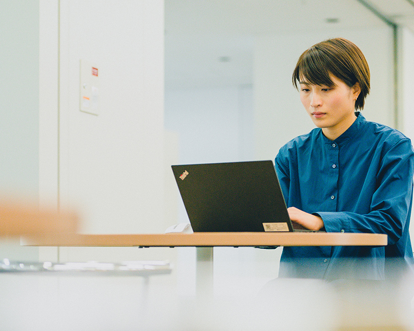 私は理系出身ではないので、入社当時は技術的な話についていくことができず、日々、戸惑いや焦りばかりでした。それでも、周囲の人たちに教えていただき、サポートを受けて目の前の業務をこなしていくうちに、少しずつ理解が深まっていきました。1年目が終わるころには社内外の打ち合わせや展示会などで、自分の担当プロジェクトについて説明し、アピールできるようになっていました。心掛けていたのは、疑問に対して自分で調べて整理した上で質問し教えてもらうこと。そのやり方で頭の中に刻み込まれ、血肉になっていきました。今もまだ半人前ですが、初心を忘れずに、勉強すること、周囲から吸収する姿勢を大事にしていきたいと思っています。そして企画の立場からプロジェクトに貢献できるように努めていたいですね。