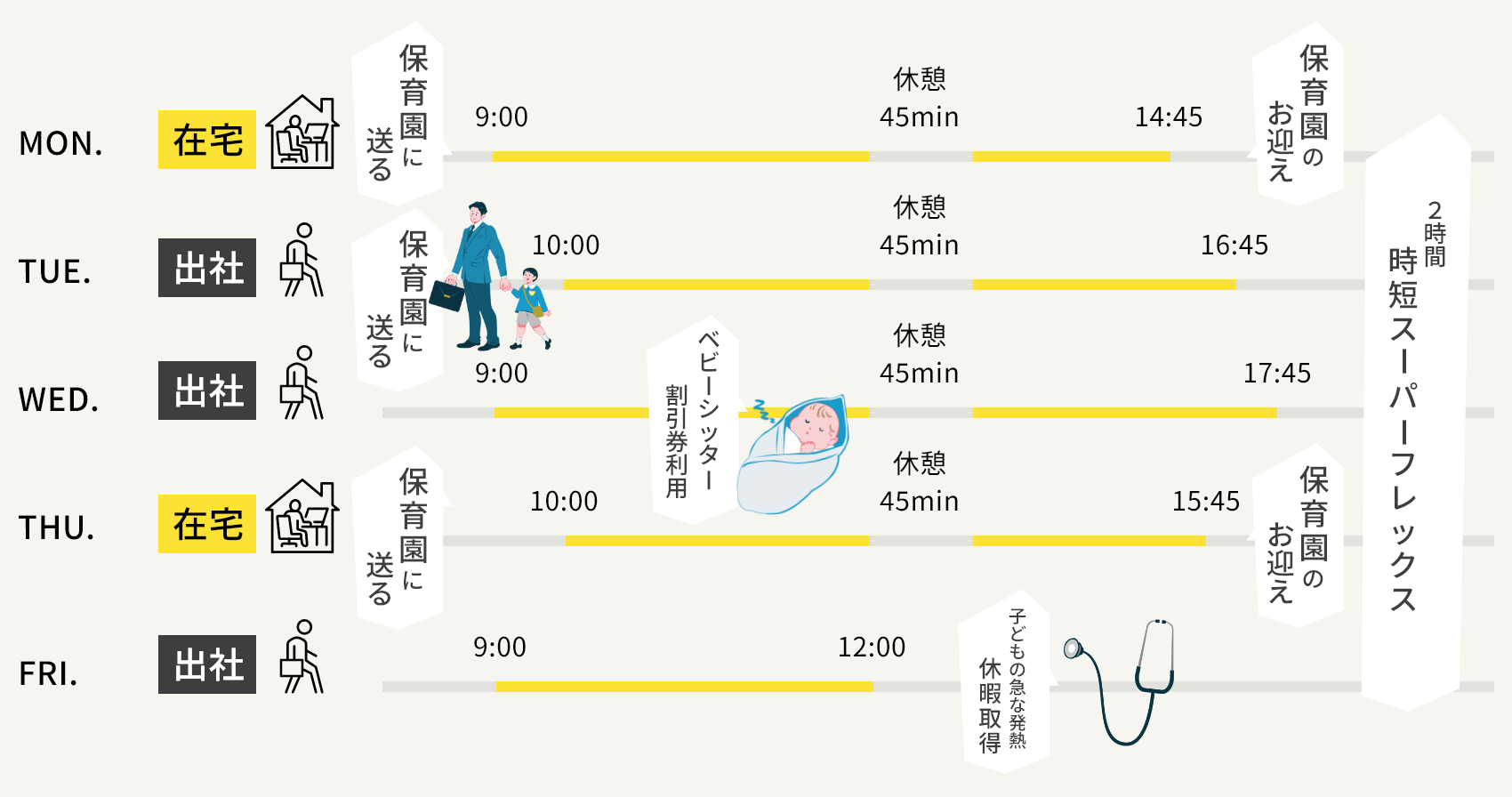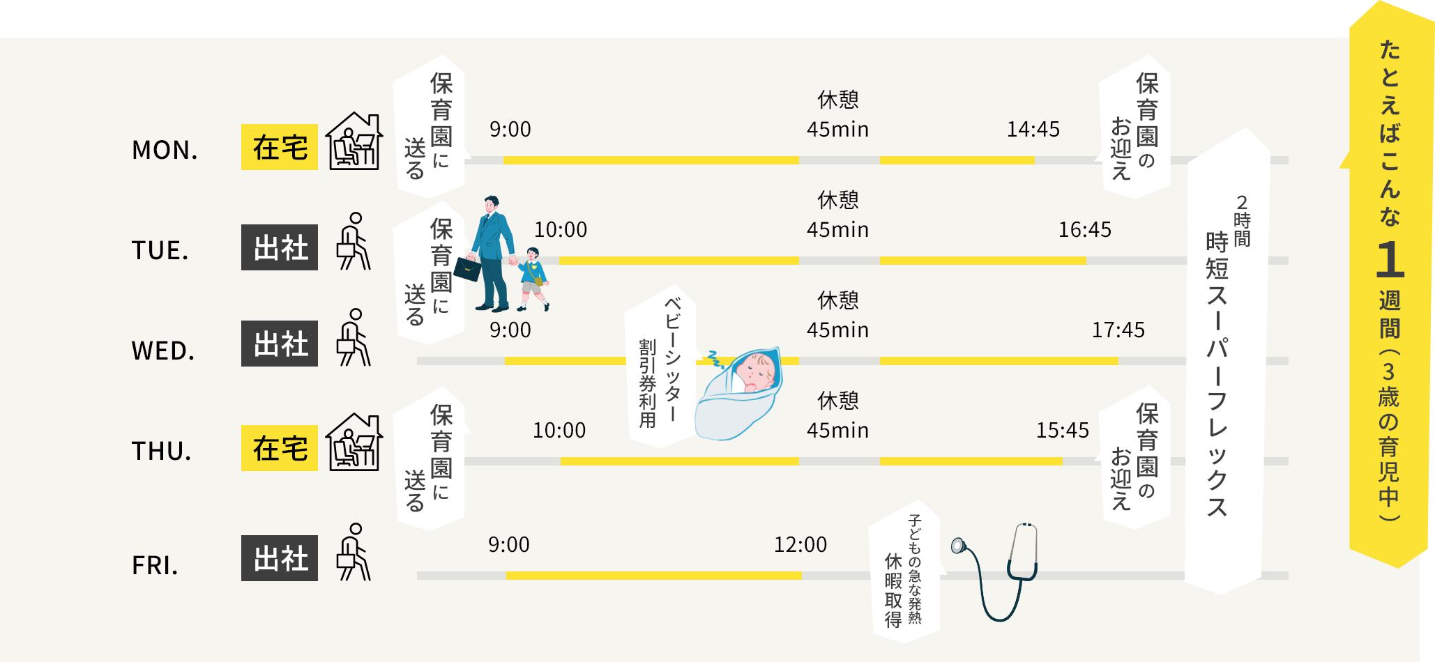 1日4時間迄(スーパーフレックスタイム勤務との併用可能)
