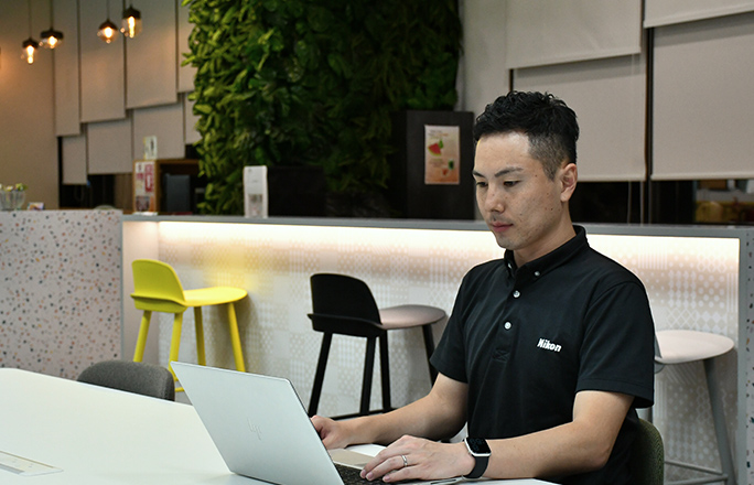シンガポールに赴任して6年目になりますが、日々実感するのはニコンの産業機器がワールドワイドで製造業に貢献していること。様々な国のメンバーと文化や価値観、言葉の壁を乗り越えて密にコミュニケーションをとり、お客様が抱えている課題を解決できたときはとてもやりがいを感じます。また、海外勤務は仕事の領域が国内に比べて格段に広くなります。ビジネス全体を俯瞰しトータルに把握できる視点を身に付けることができたと思っています。
