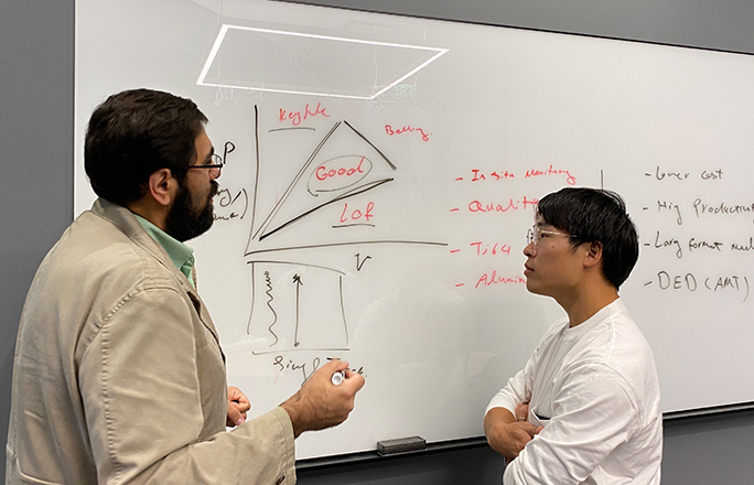 現地スタッフと材料評価、金属 3D プリンターのパラメーターに関してディスカッション。自由に、フランクに議論できる環境だ。
