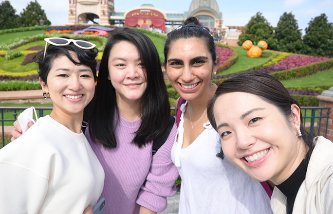 友人と上海のテーマパークで。元々体を動かすことが好き。普段のオフは友人と出かけたり、ジムでリフレッシュ。旅行も好きで、赴任以来中国各地を訪れている。