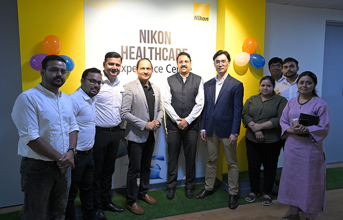 Nikon India グルガオン事務所内に開設したヘルスケア事業部製品のデモセンター「Nikon Healthcare Experience Centre」開所式の際の風景。インド北部地域におけるライフサイエンス製品の拡販拠点として立ち上げた。