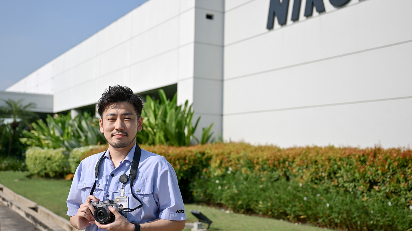 ニコンのミラーレスカメラや交換レンズのほとんどが、ここNikon (Thailand) Co, Ltd.で生産されています。私は、これらの製品に使用される部品の品質保証を担当しています。試作段階では、満たすべき品質の基準を設定し、設計どおりに形状や信頼性が確保されているか評価します。生産にあたっては、工程投入前の検査、不具合が起こった場合の原因解析、さらに量産段階でも、良品率を高めるために継続的に改善に取り組んでいます。私たちの部署には約100名の現地スタッフがおり、私は部署のマネジメントをサポートするとともにスタッフの教育も担当しています。