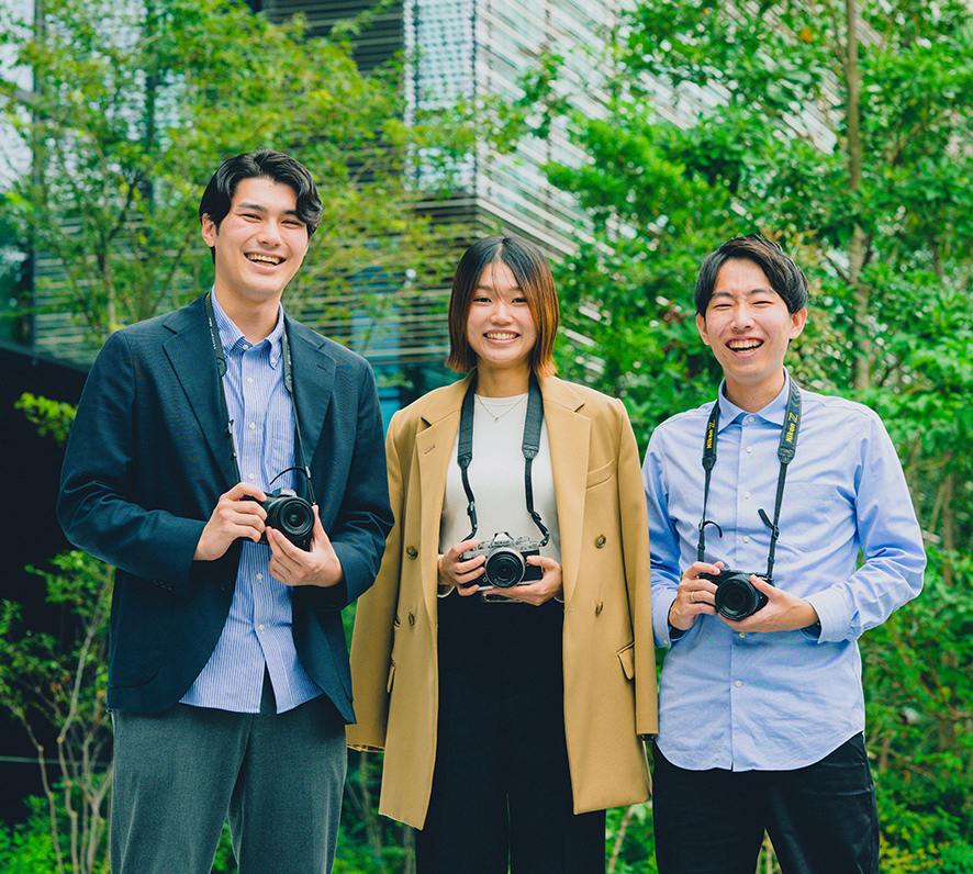 H.S.:いちばん年齢の近い先輩と同期。年齢に関係なく気さくなニコンですが、身近な存在がいるとやっぱり心強い。
